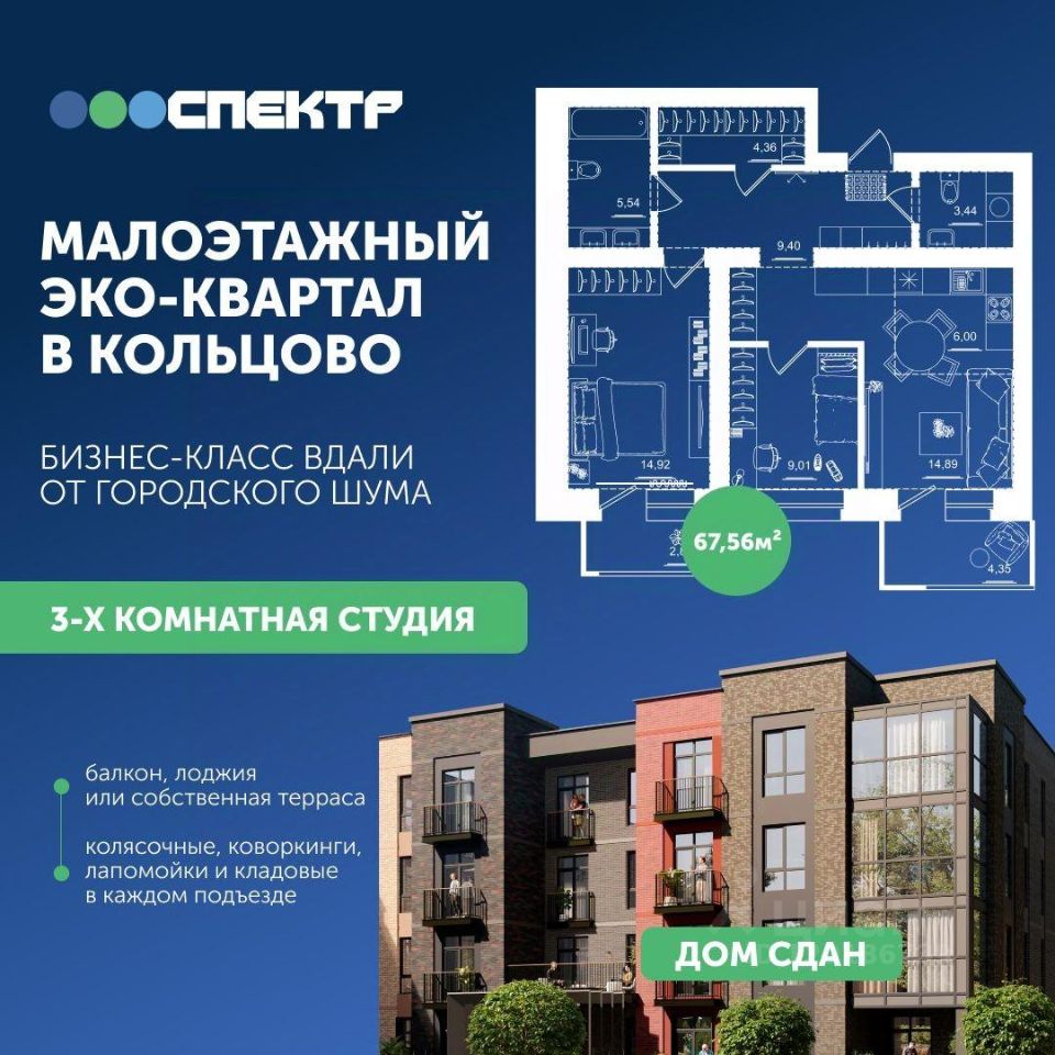 ?Современный малоэтажный квартал в Кольцово в гармонии с природой, где вы будете наслаждаться живописными видами, прогуливаться по благоустроенным аллеям или лесным тропинкам.