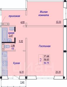 58,75 м²