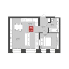Продаётся 2-комнатная квартира в строящемся доме (Дом 1), срок сдачи: IV-кв. 2025, общей площадью 44.6 кв.м., на 2 этаже.