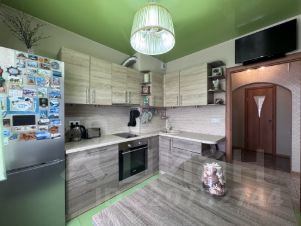 Просторная кухня в зеленых тонах. Где вам в подарок останется - кухонный гарнитур с варочной поверхностью и духовым шкафом. Вытяжка , холодильник , и микроволновка. Стол кухонный и угловой диван.