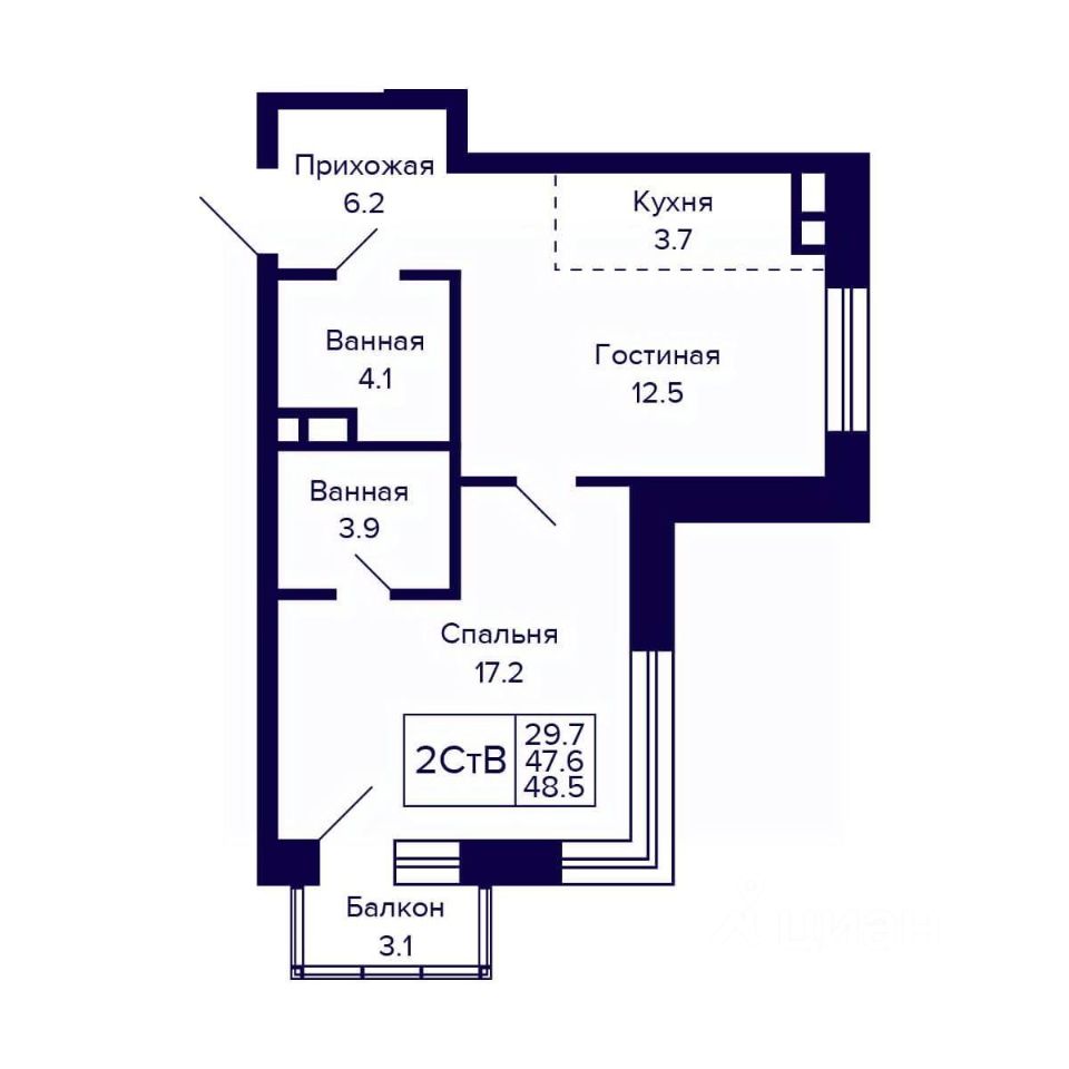 Общая площадь48,5 м²