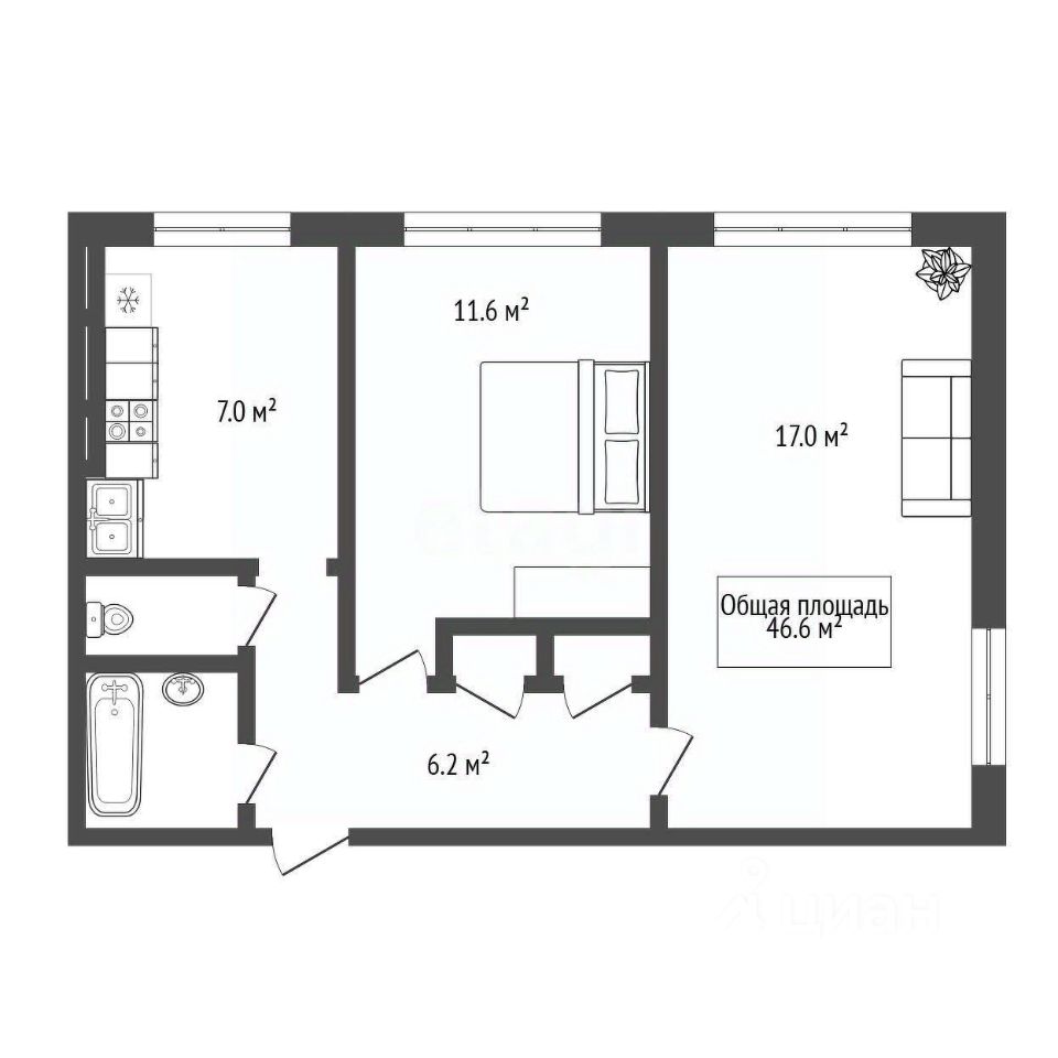 * Вся мебель на фото (кроме холодильника) остается новым собственникам, можно сразу заселиться без дополнительных трат.