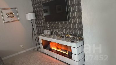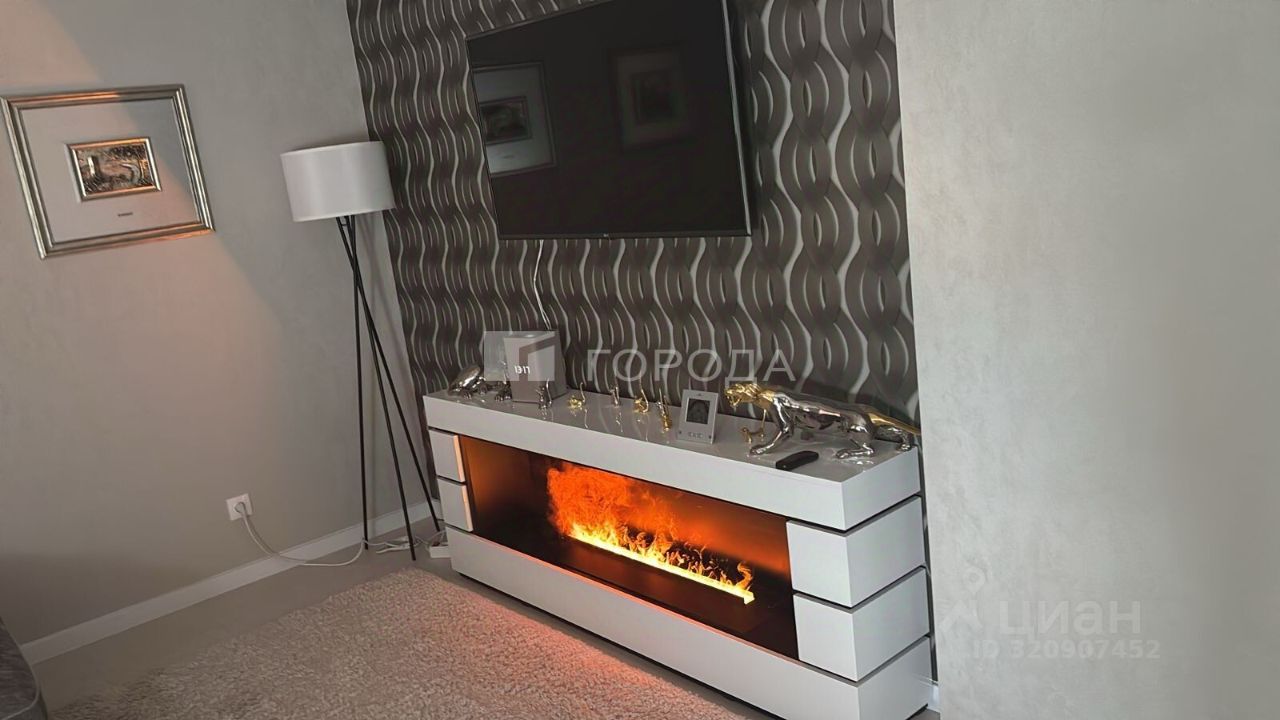 - Большая комната - гостиная, в ней два окна. На потолке натяжные потолки, на стенах флизелиновые обои, на полу ПВХ плитка. Удобный новый диван , ТВ, зона для работы. Уютный водяной камин с имитацией потрескивания дров создаст дополнительный комфорт. Также установлена система очистки воздуха ("Тион").