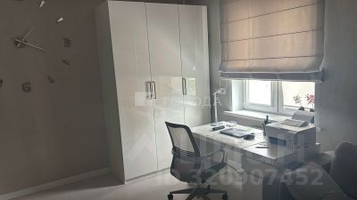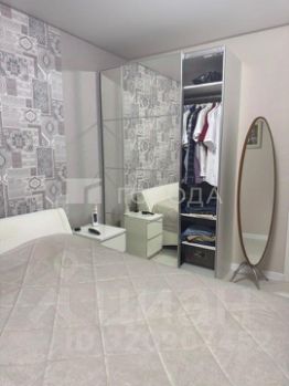 В спальне добротная новая кровать с ортопедическим матрасом, две тумбочки, гардеробный шкаф с зеркальными дверями. Также тумба для ТВ и телевизор напротив кровати. В комнате натяжной потолок, флизелиновые обои.