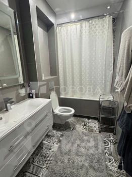 - Один санузел просторный с ванной и тропическим душем, подвесной инсталляцией, красивой дизайнерской тумбой-раковиной и зеркалом с подсветкой.