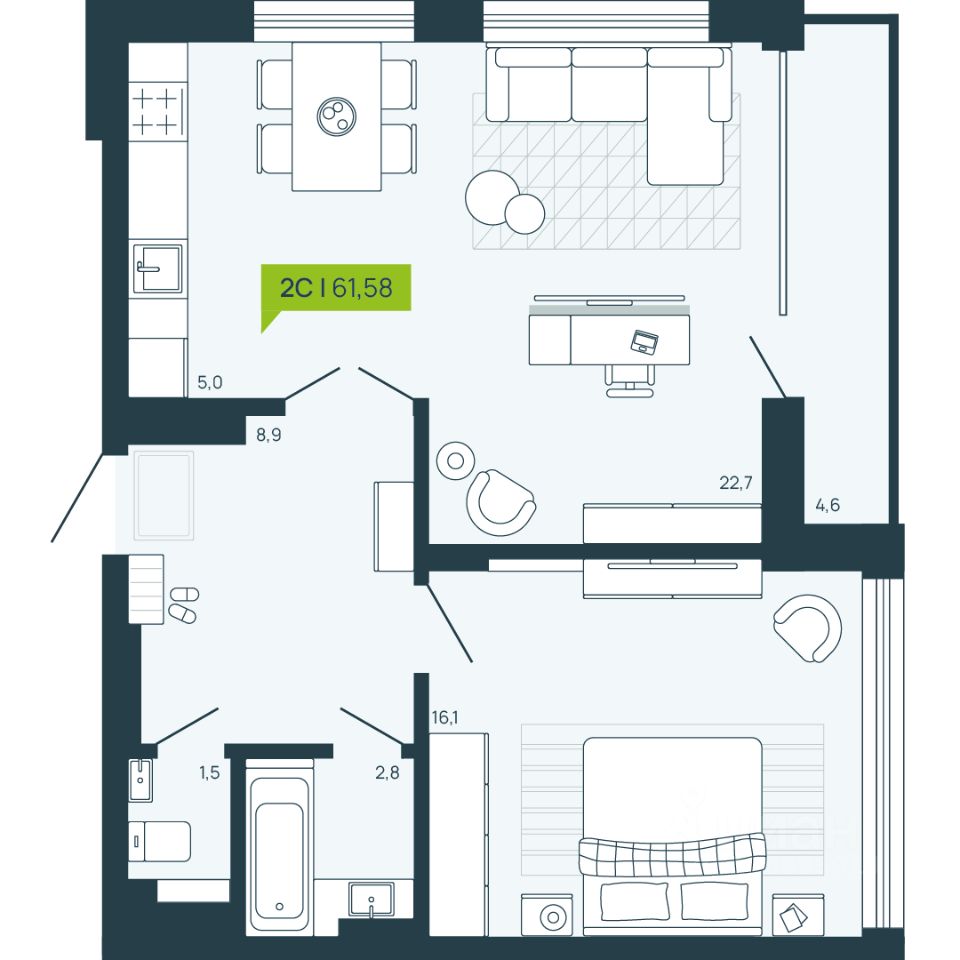 Общая площадь61,58 м²