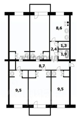 продается комната 9,5 кв.м., в малонаселенной 5-ти комнатной квартире.