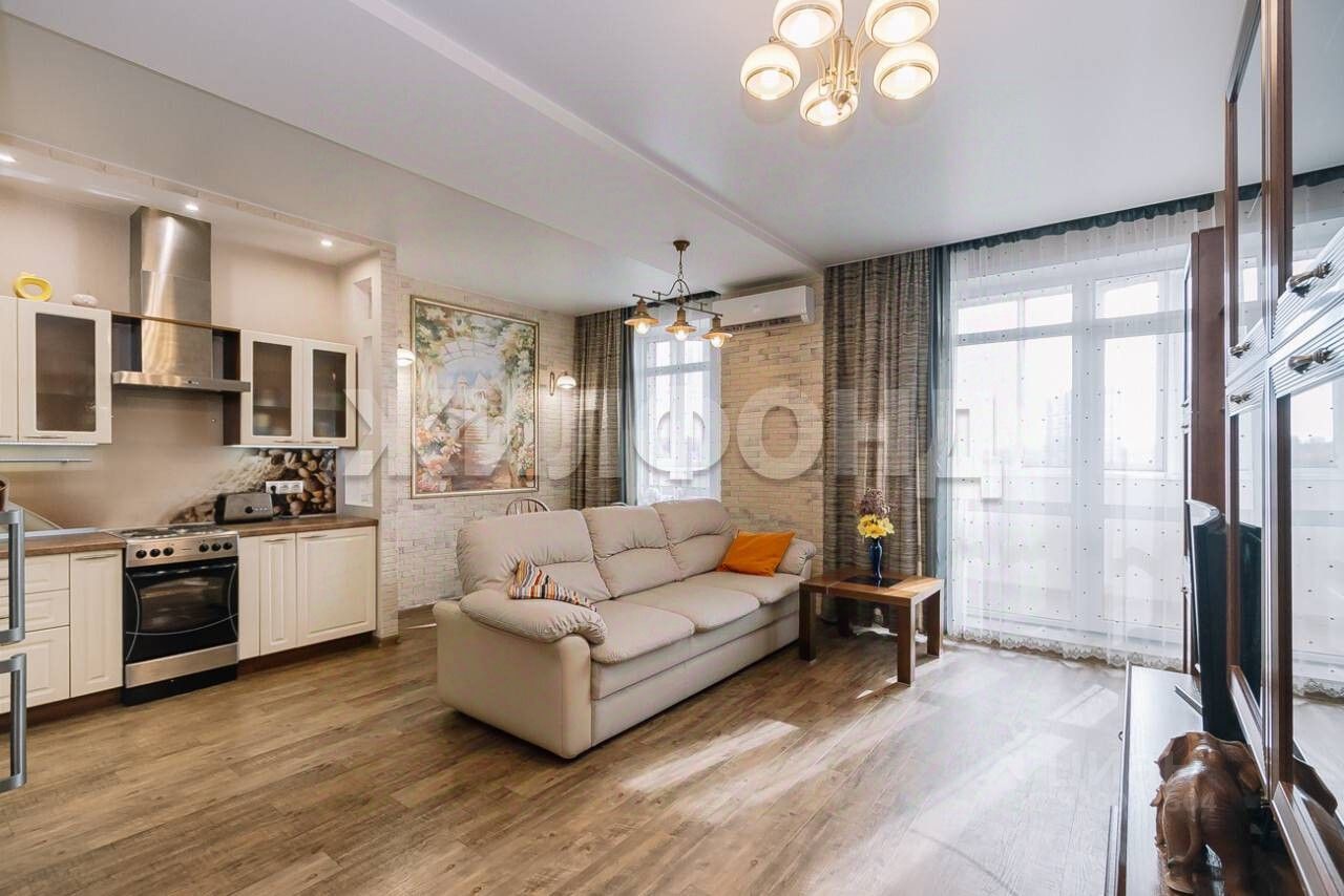 В квартире выполнен евроремонт с использованием современных и качественных материалов, все детали интерьера продуманы, почти вся мебель и бытовая техника остаются покупателю.