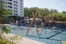 -На придомовой территории расположены: детские площадки для нескольких возрастных групп детей, спортивная площадка wоrkоut, выделены прогулочные зоны. Много парковочных мест.