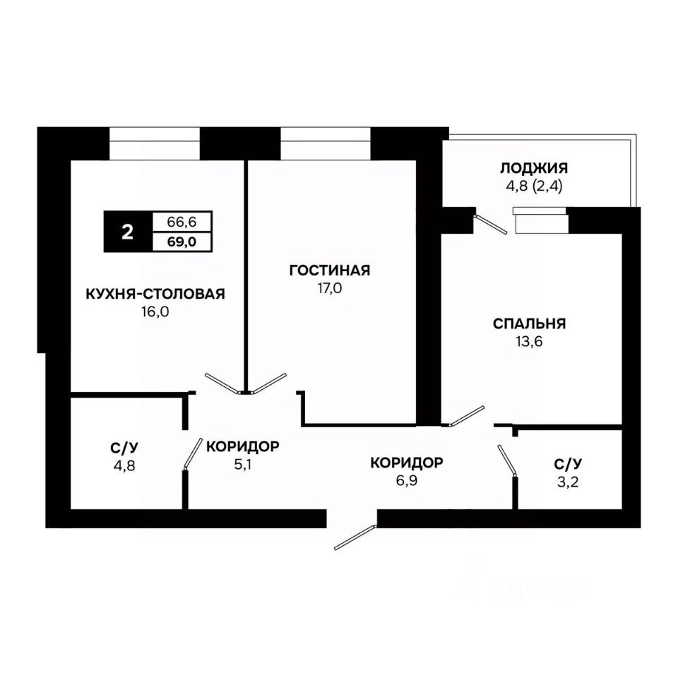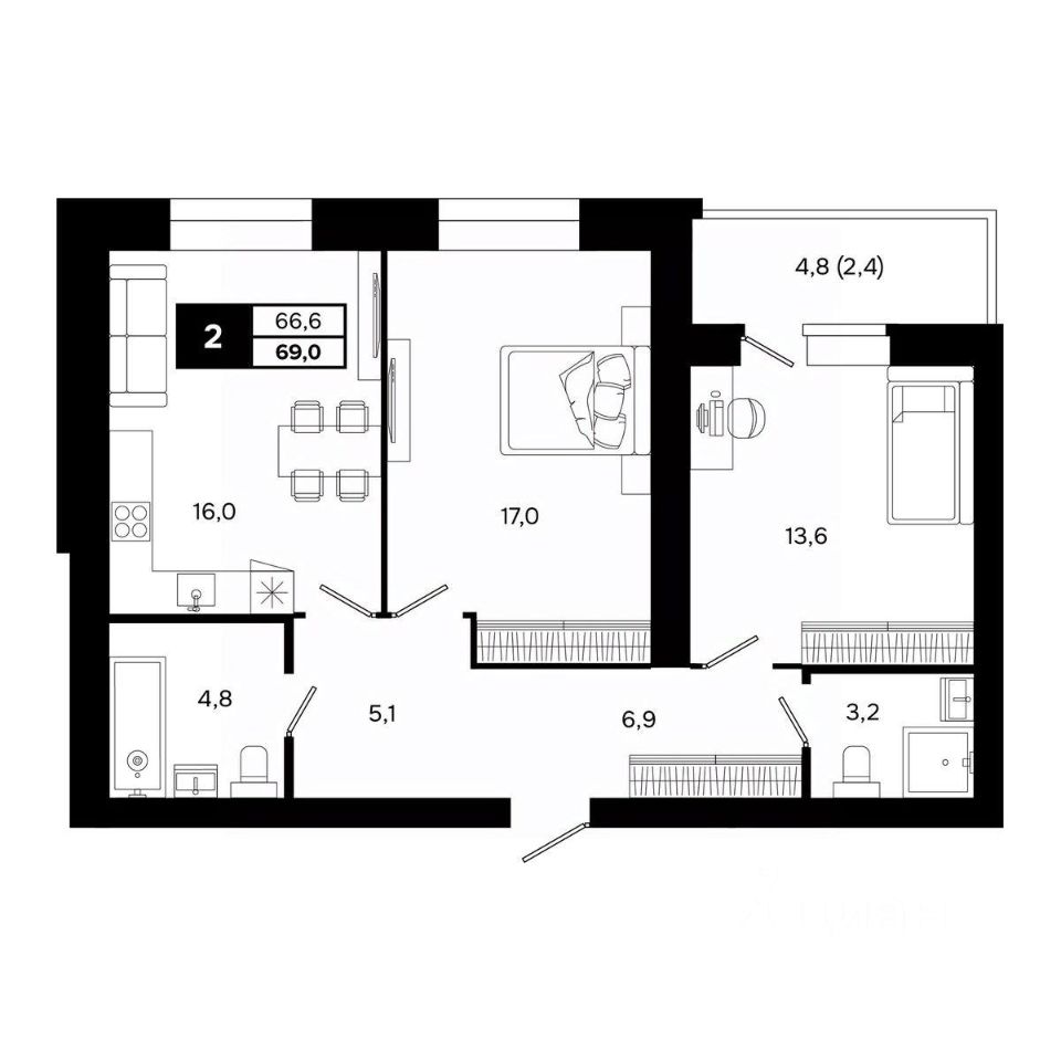 Общая площадь69 м²