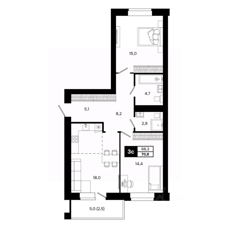 Общая площадь70,8 м²