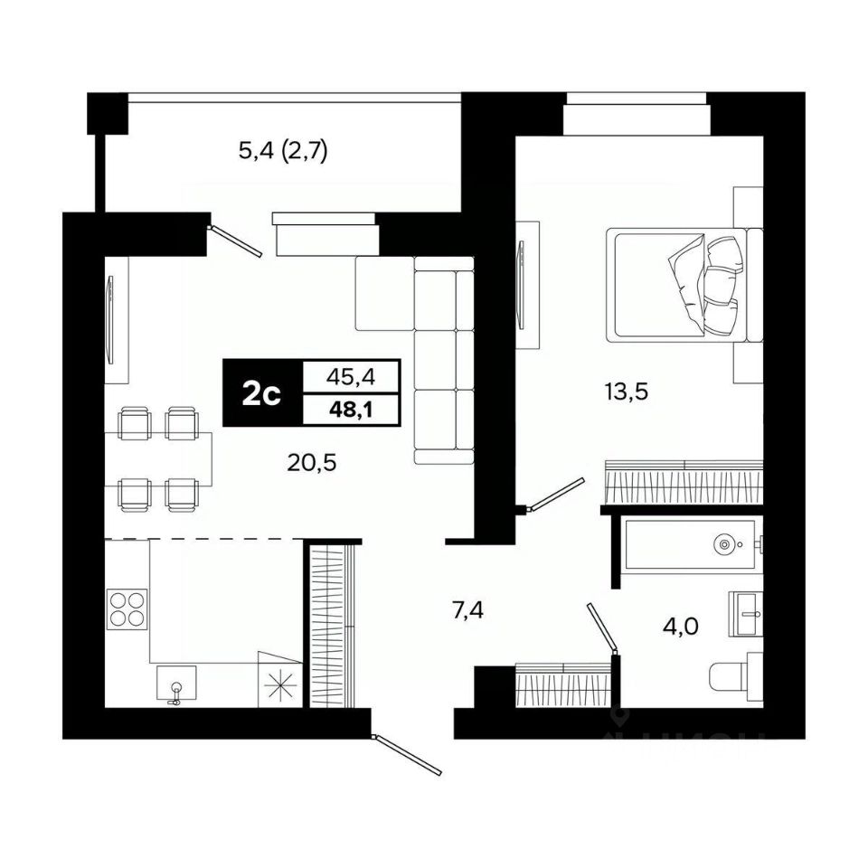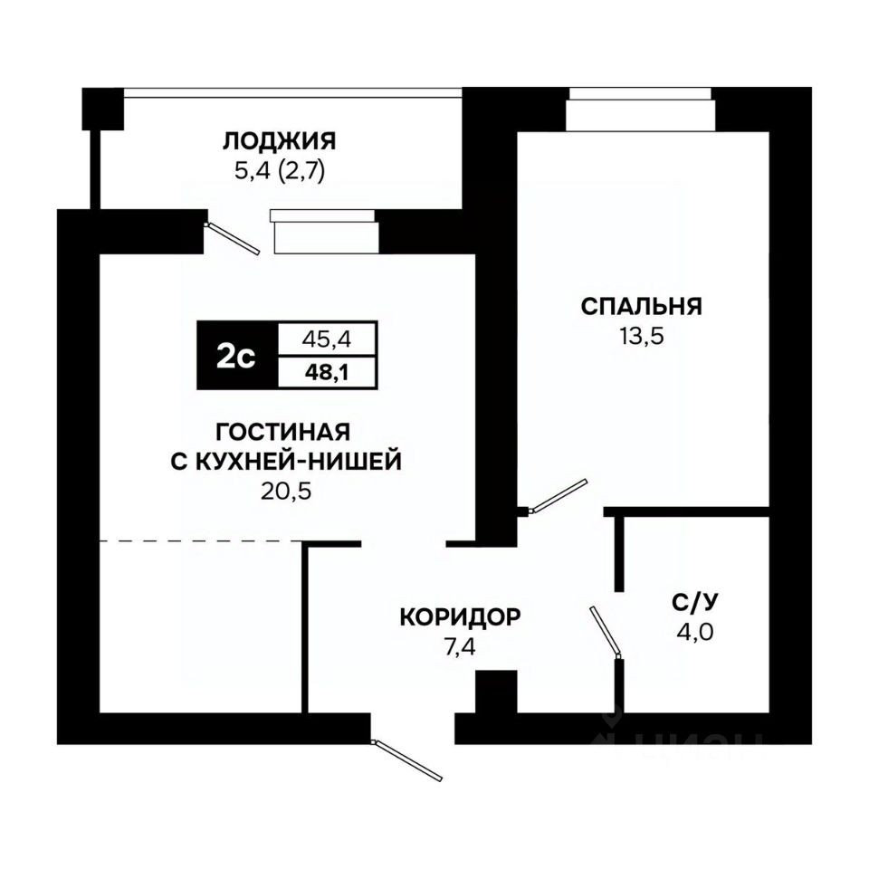 Общая площадь48,1 м²