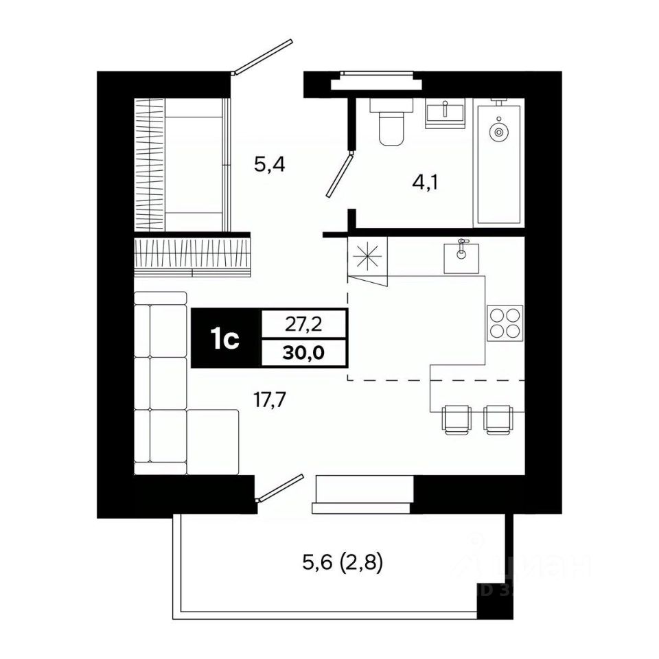 Общая площадь30 м²