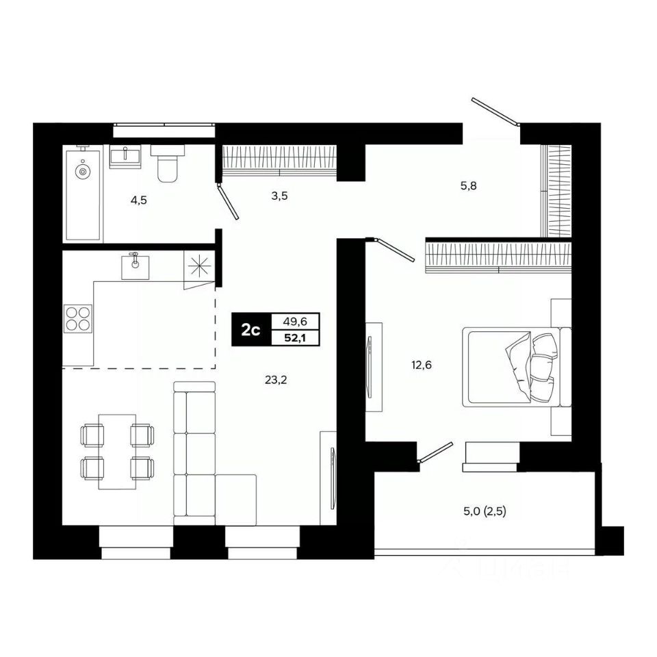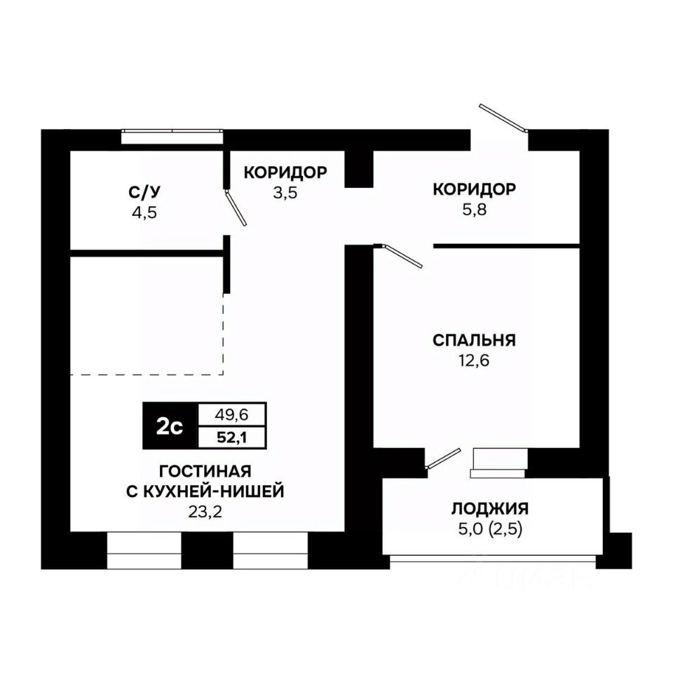 Общая площадь52,1 м²