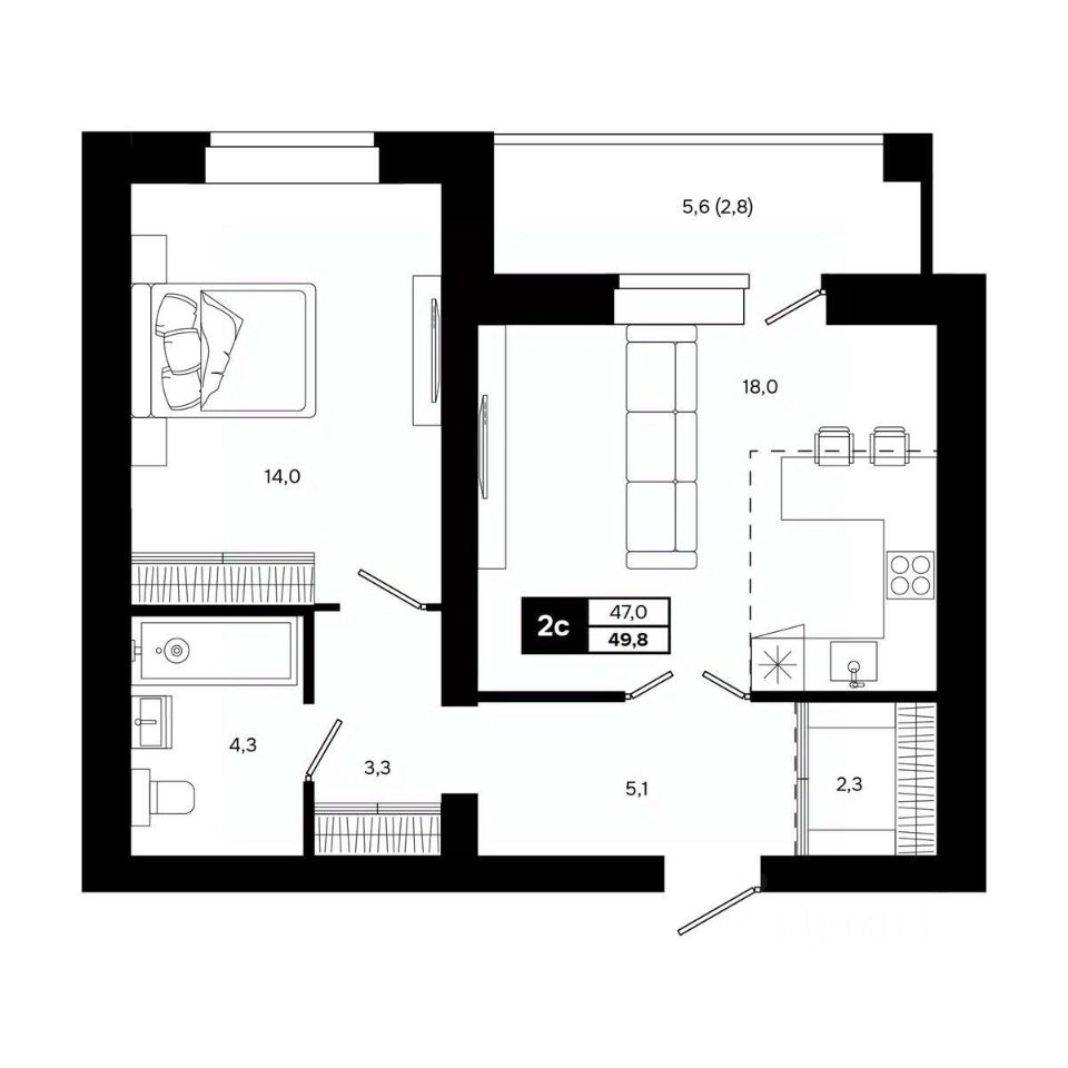 Общая площадь49,8 м²