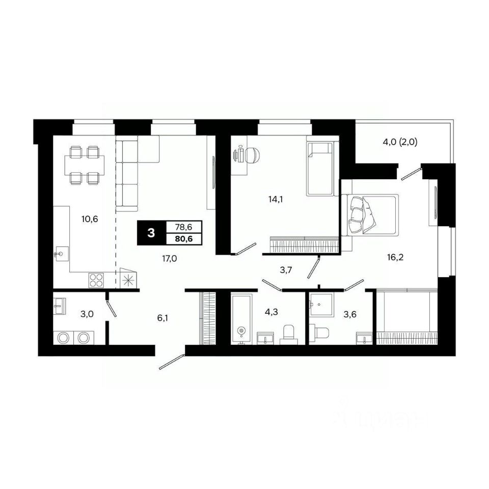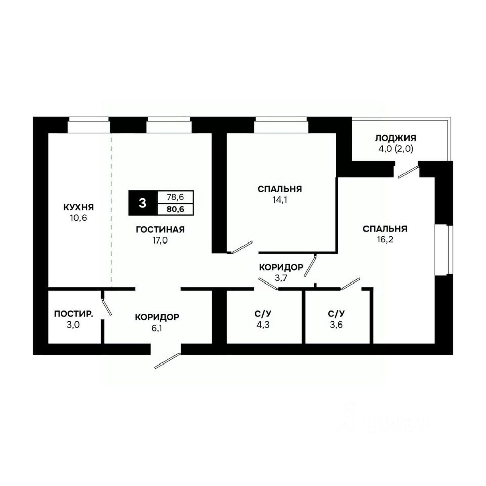 Общая площадь80,6 м²