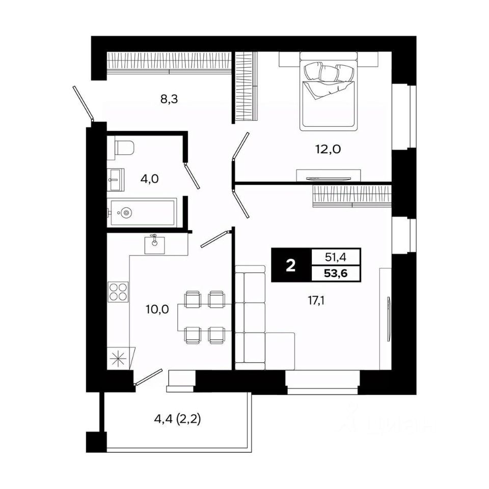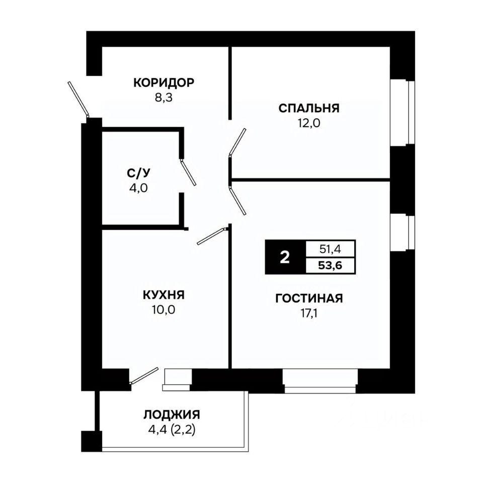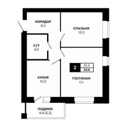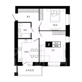 Общая площадь53,6 м²