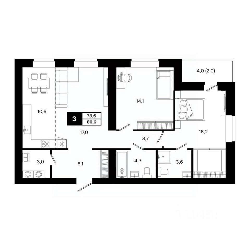 Общая площадь80,6 м²