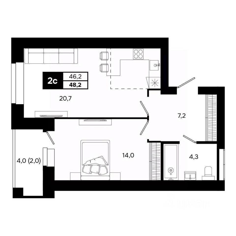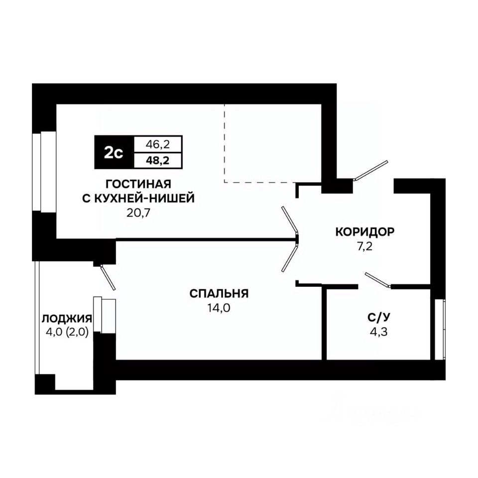 Общая площадь48,2 м²
