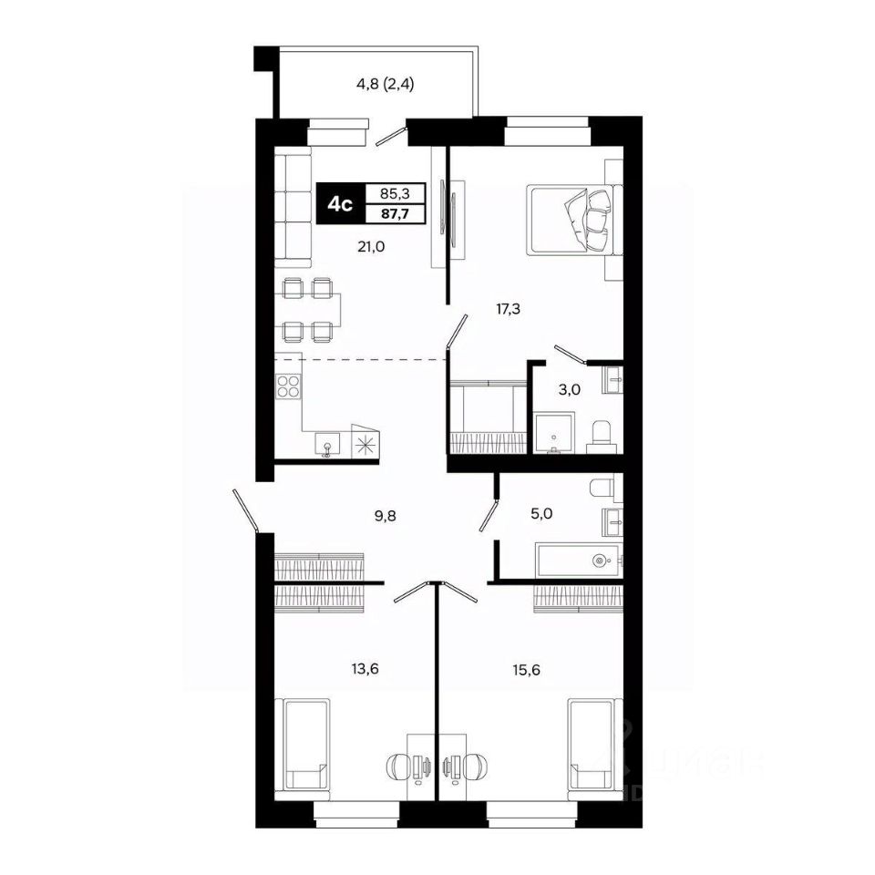 Общая площадь87,7 м²