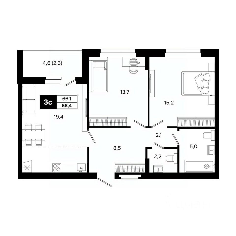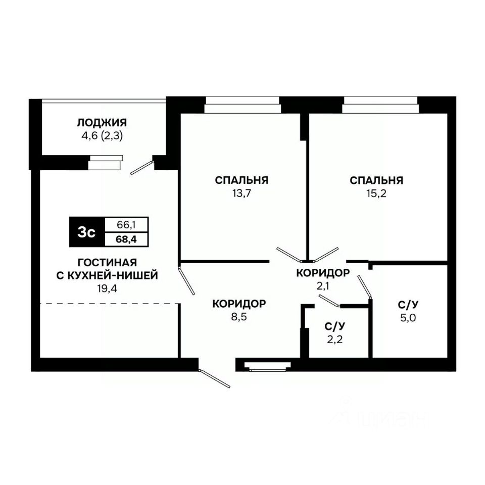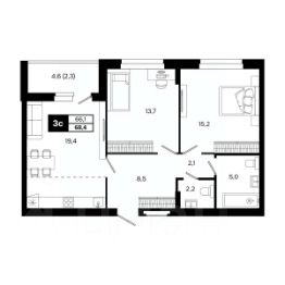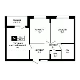 Общая площадь68,4 м²
