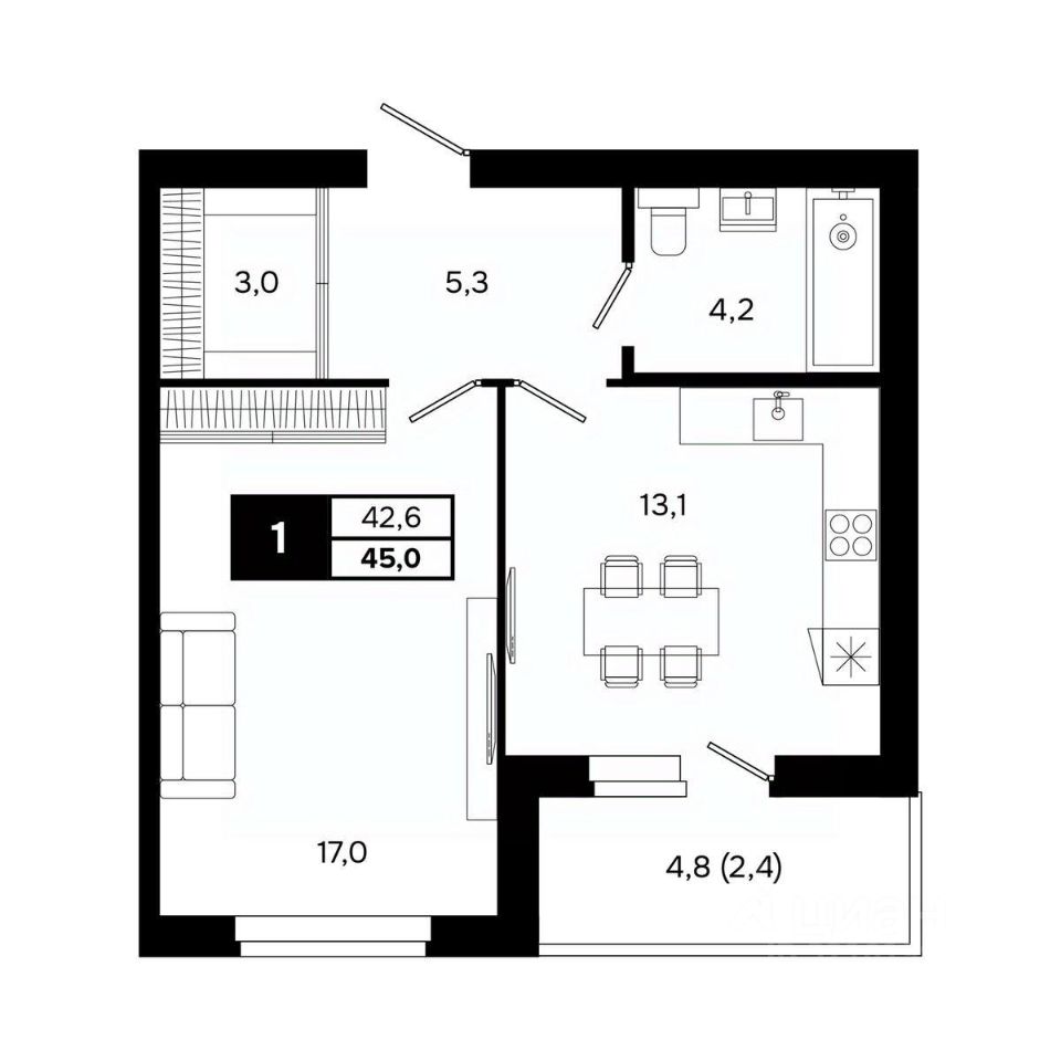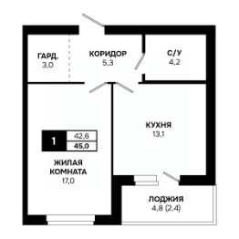 Общая площадь45 м²