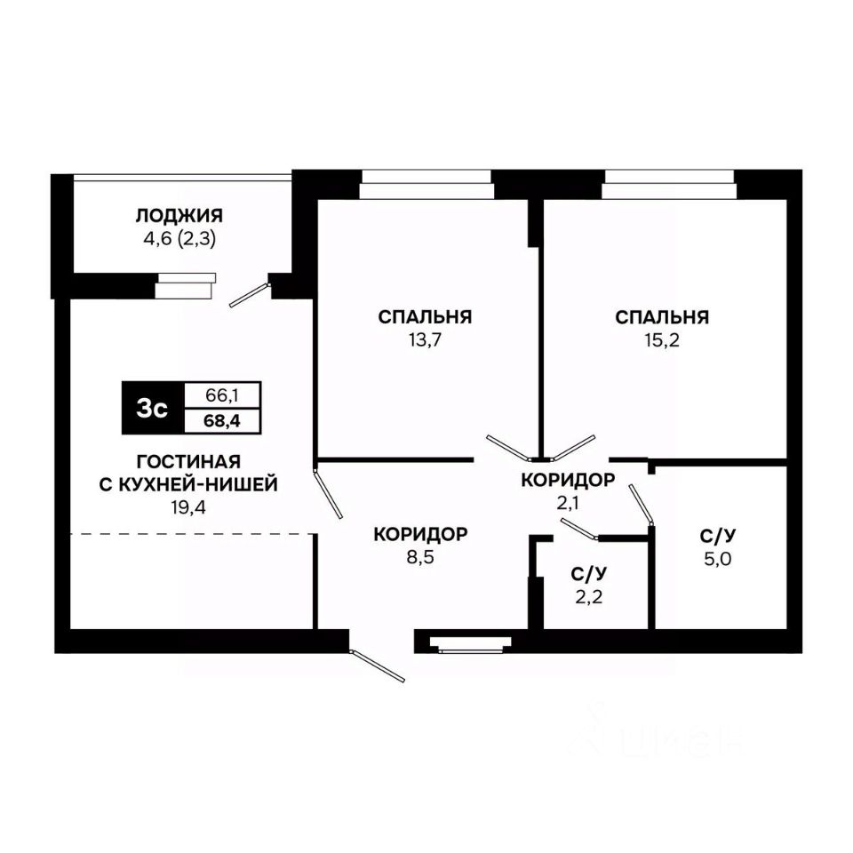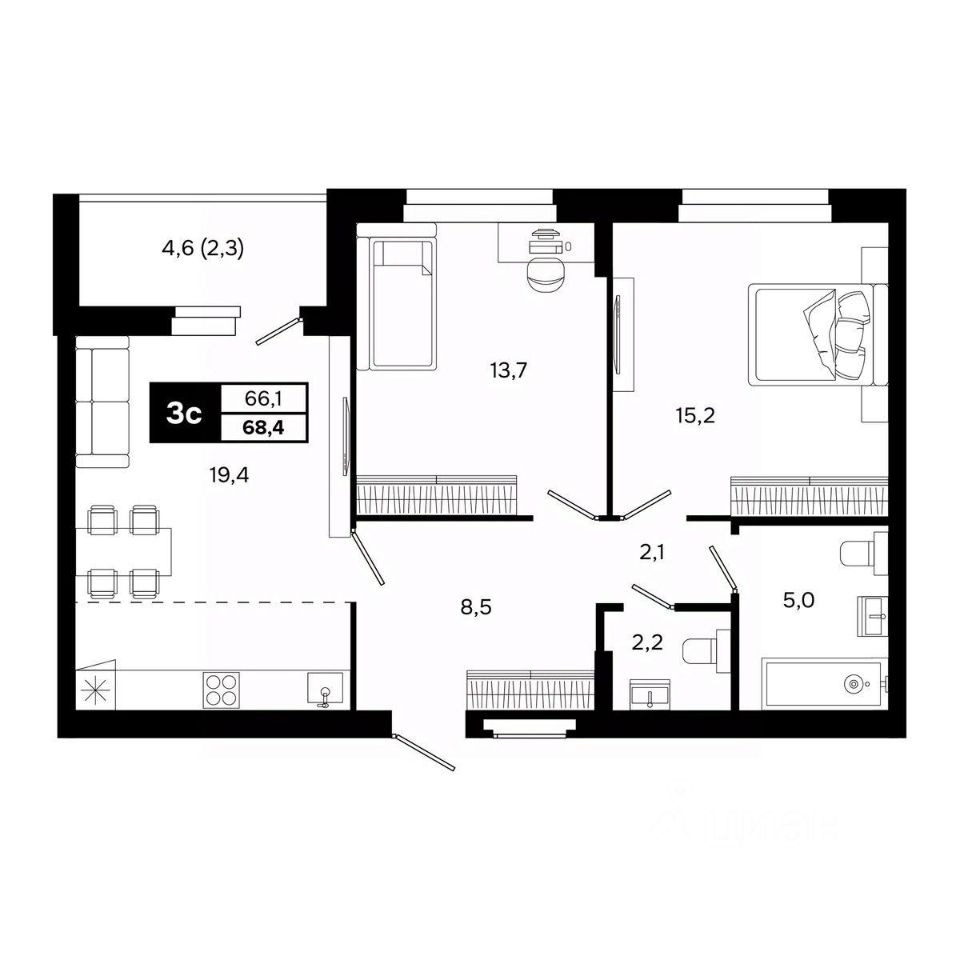 Общая площадь68,4 м²