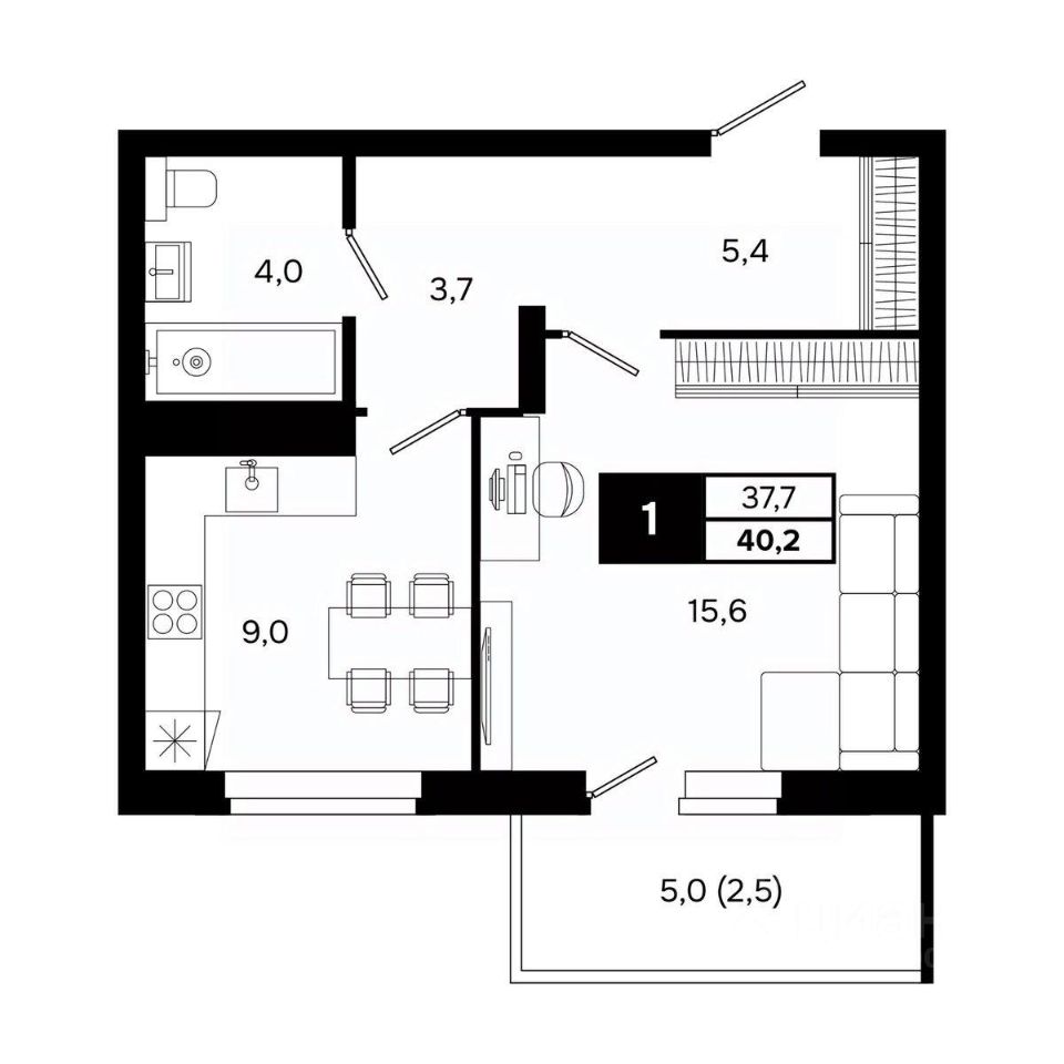 Общая площадь40,2 м²