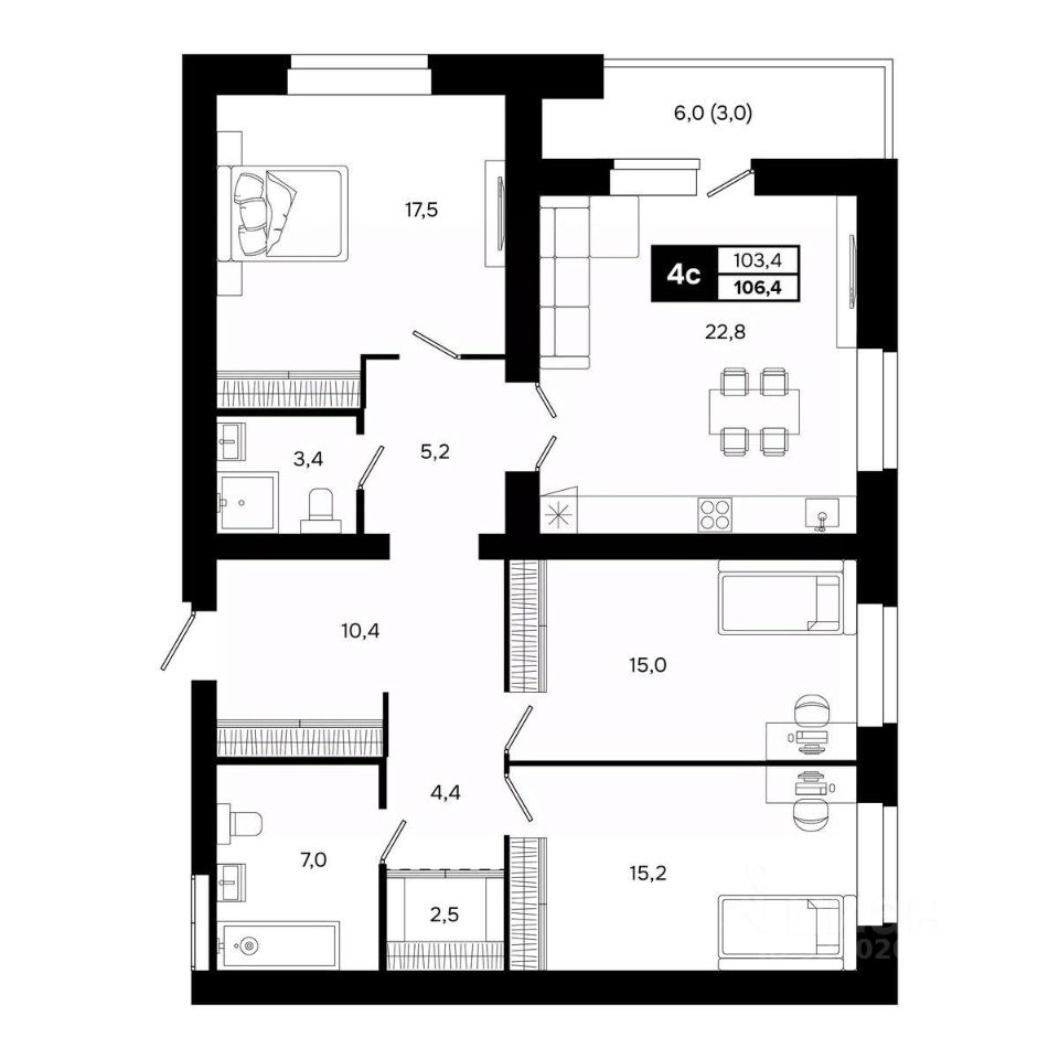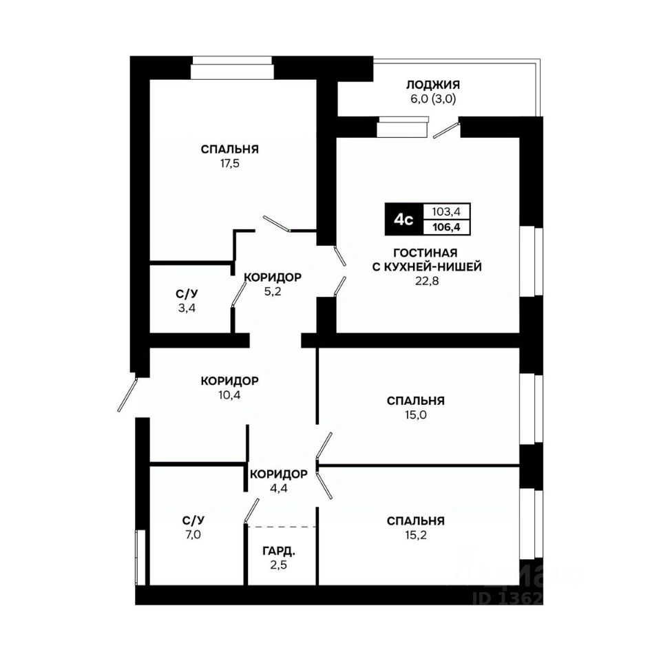Общая площадь106,4 м²