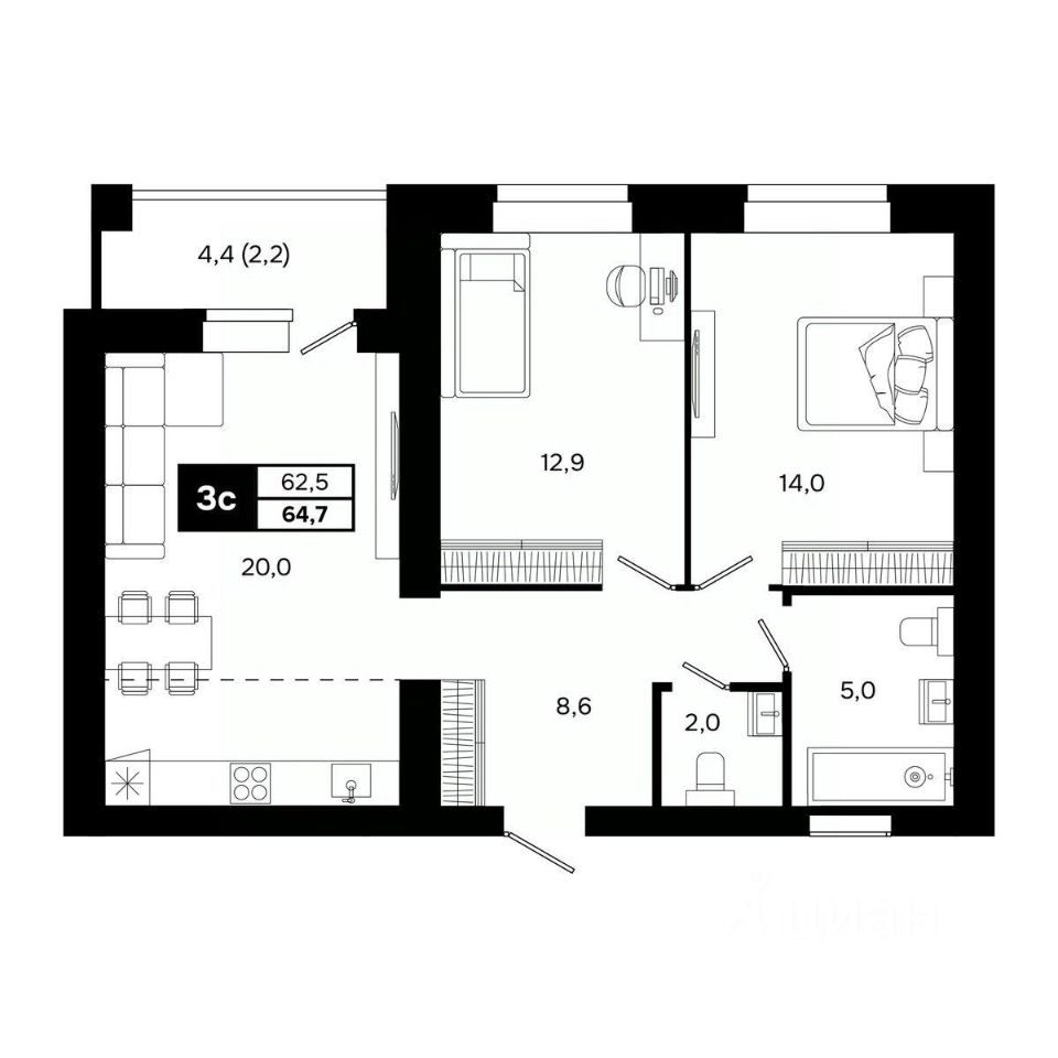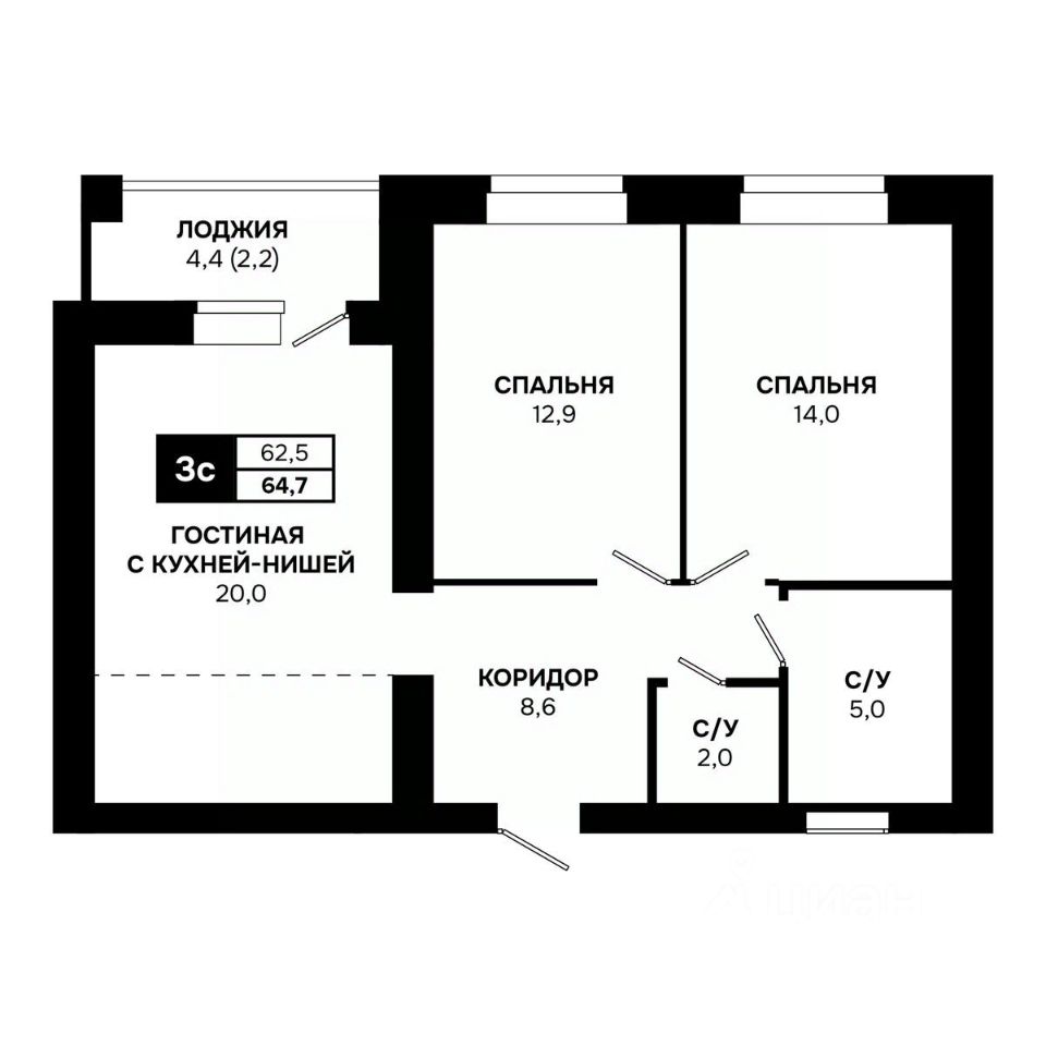 Общая площадь64,7 м²