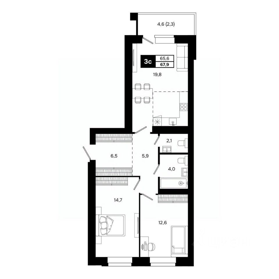 Общая площадь67,9 м²
