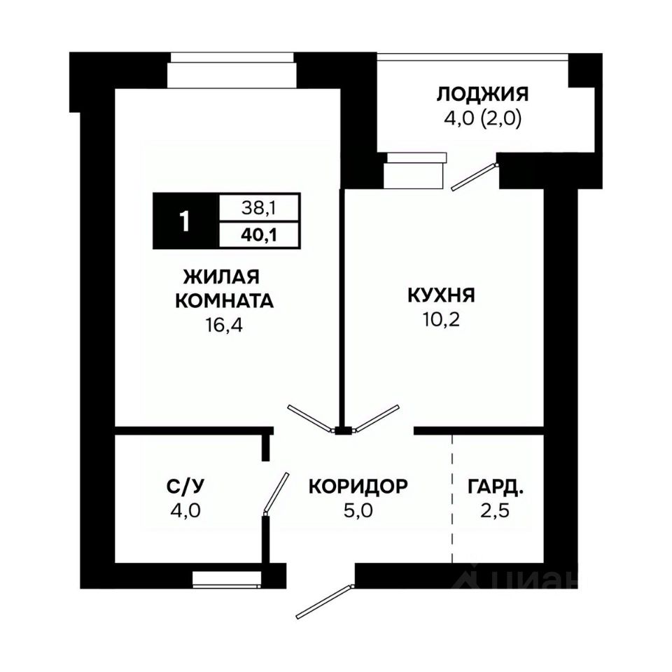 Общая площадь40,1 м²