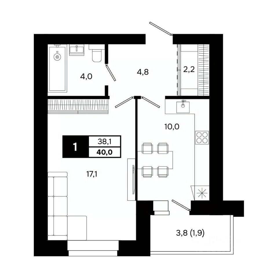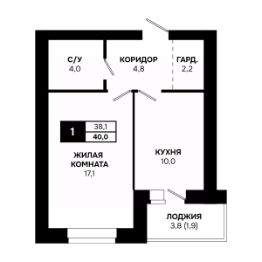 Общая площадь40 м²