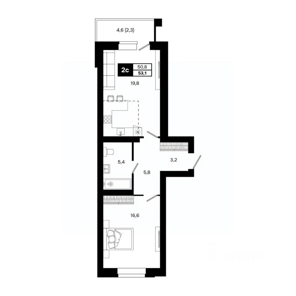 Общая площадь53,1 м²