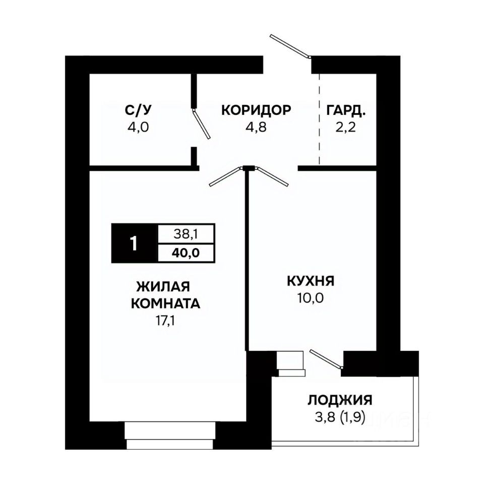 Общая площадь40 м²