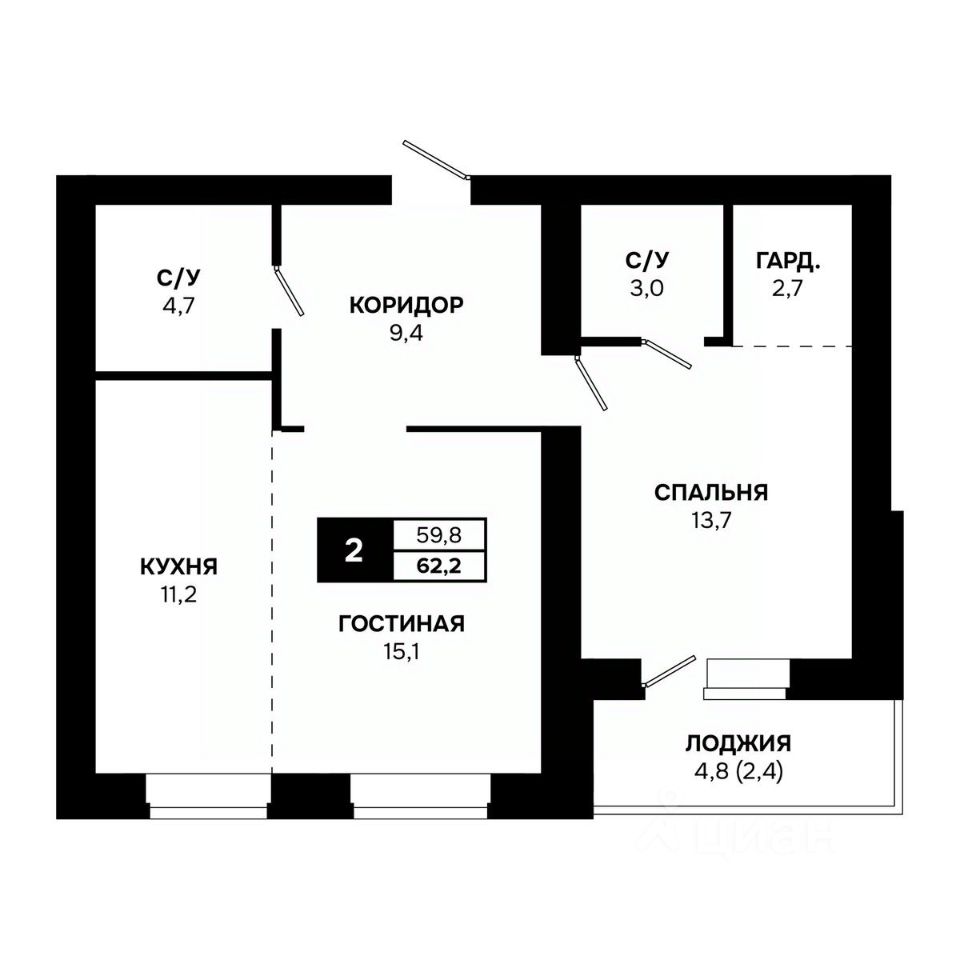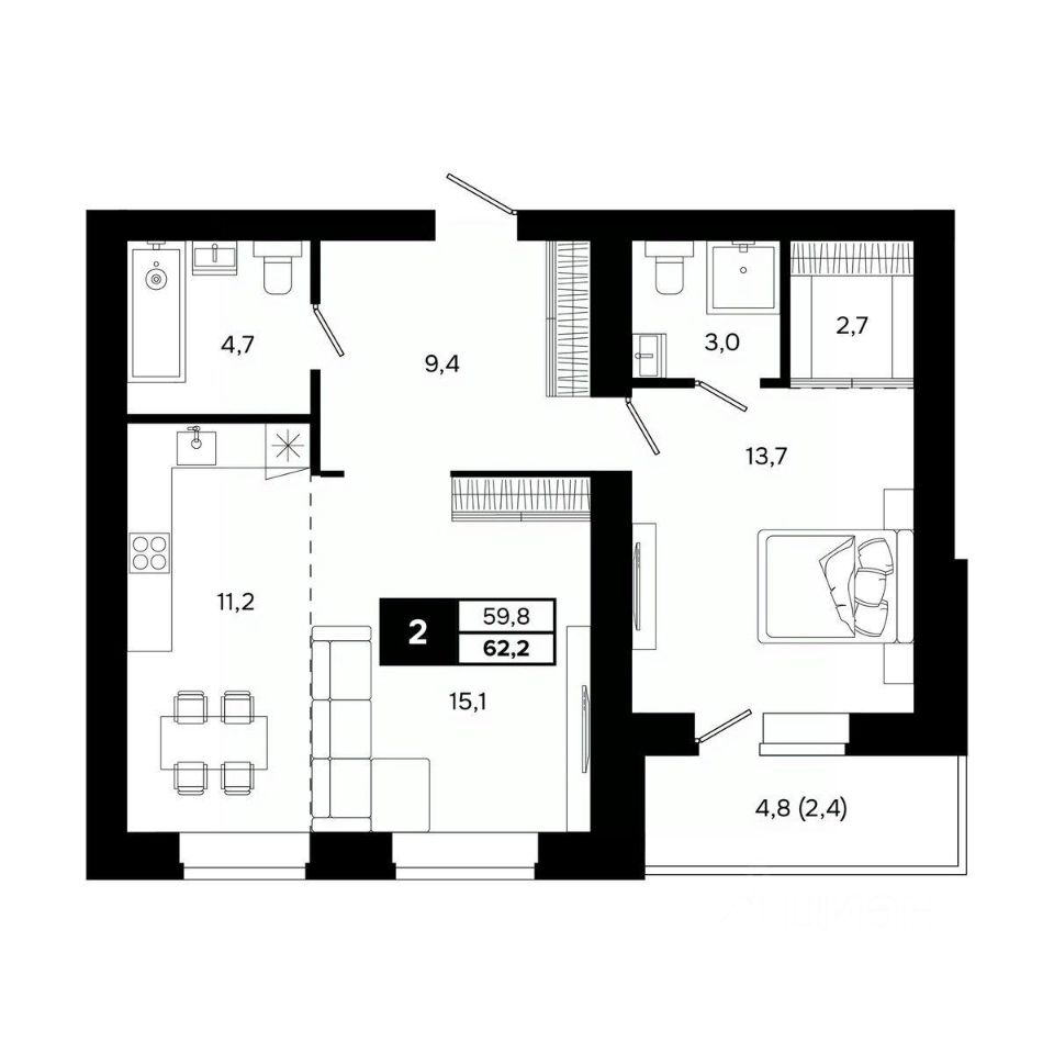 Общая площадь62,2 м²