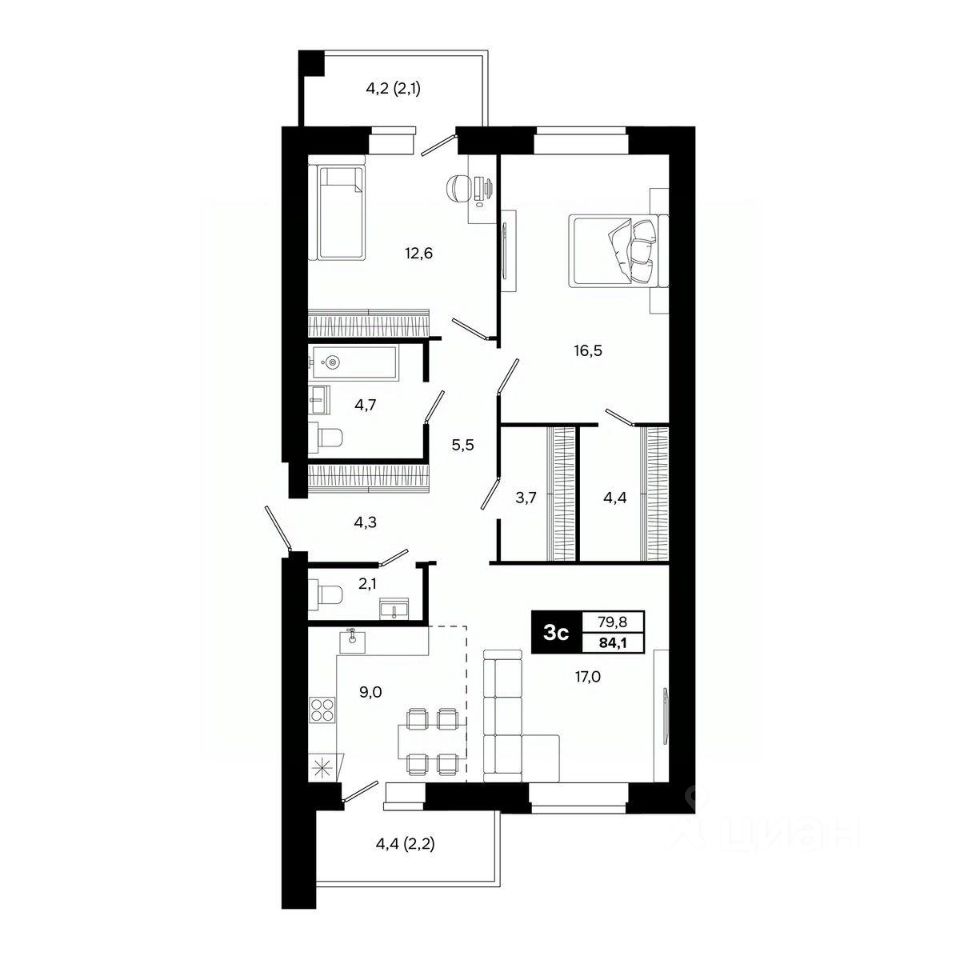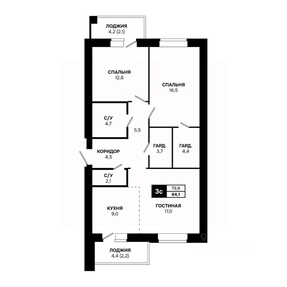 Общая площадь84,1 м²