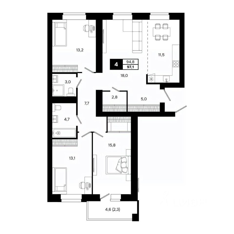 Общая площадь97,1 м²