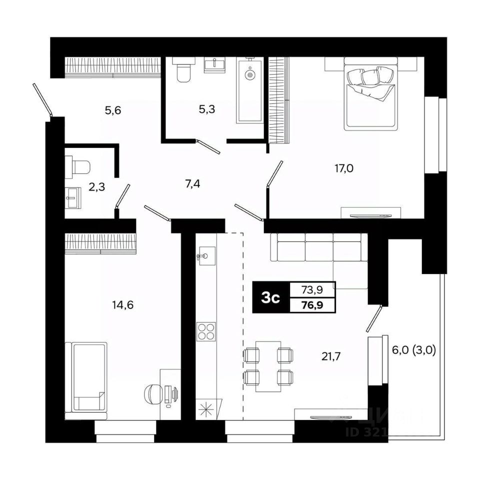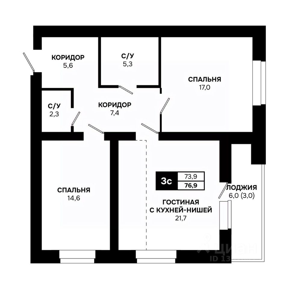 Общая площадь76,9 м²