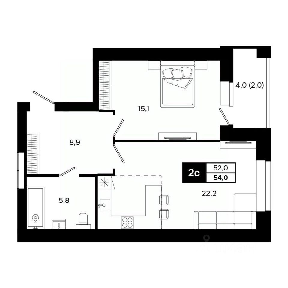 Общая площадь54 м²