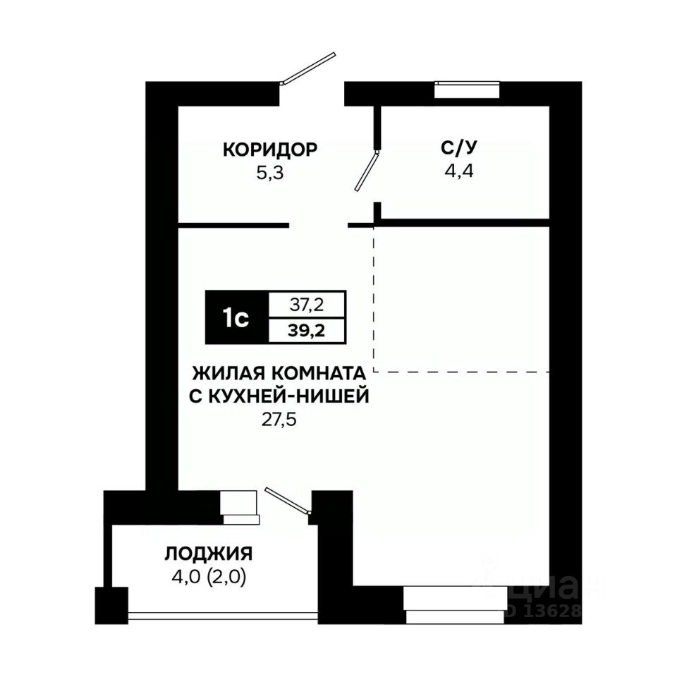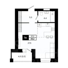 Общая площадь39,2 м²