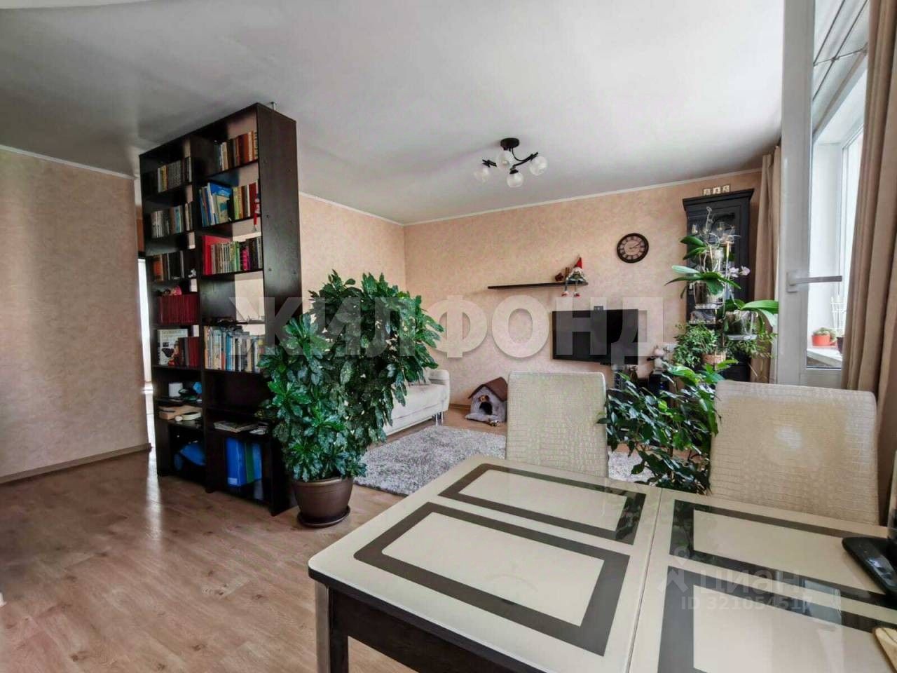 Большая кухня-гостинная. На полу ламинат.