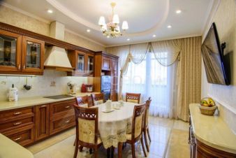 Общая площадь квартиры составляет 121 кв. м, из которых 79 кв. м — жилая площадь, а 18 кв. м занимает кухня. Угловое расположение квартиры обеспечивает хорошую вентиляцию и возможность зонирования пространства.