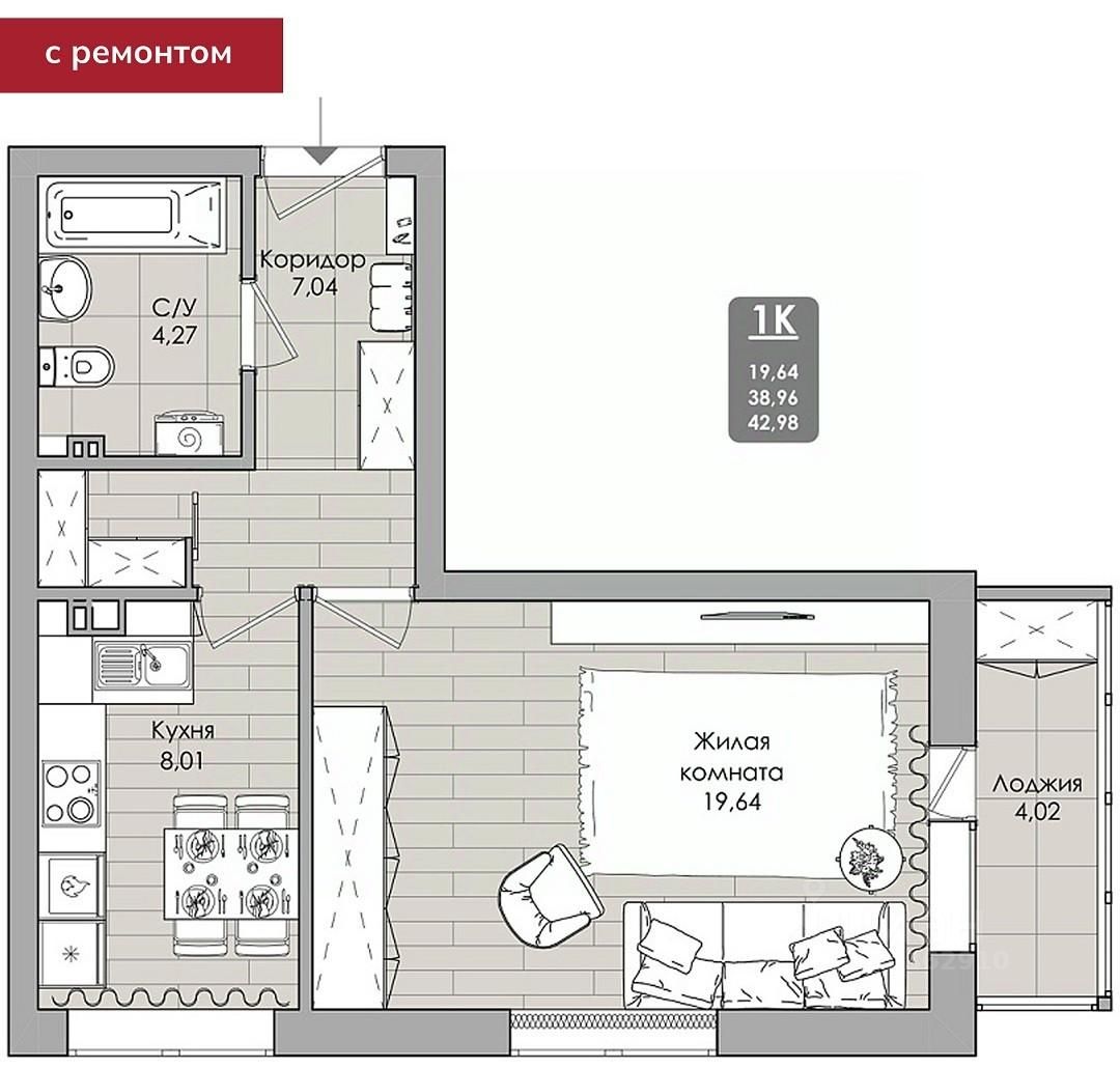 Общая площадь42,4 м²