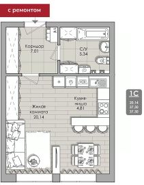 Общая площадь36,7 м²