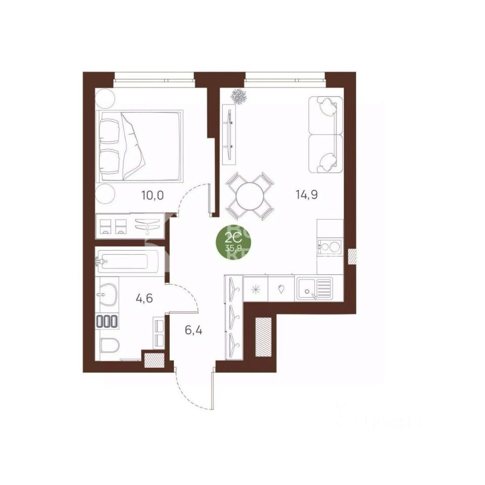 Просторные санузел и кухня — больше, чем стандарт.