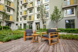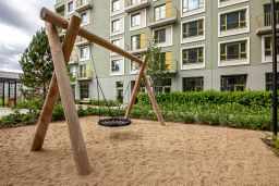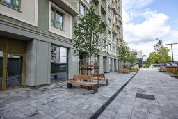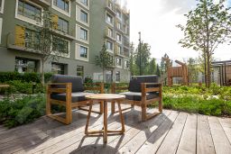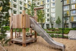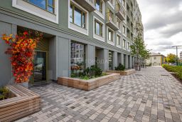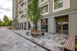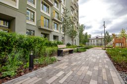 Преимущества жилого комплекса: современный квартал комфорт-класса, закрытая территория с видеонаблюдением, подземный паркинг и наземная парковка, ландшафтный дизайн двора, спортивные и детские площадки