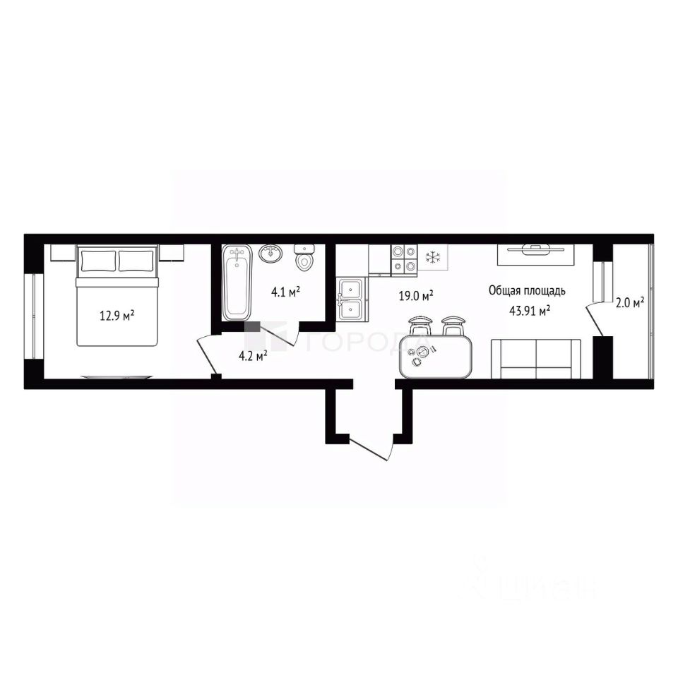 В продаже однокомнатная квартира 43,91 м² в современном ЖК "Авиатор".