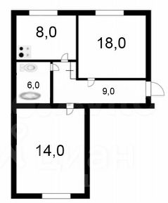 Общая площадь квартиры 54.90 кв.м., кухня 8 кв.м.