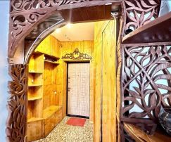 Дом комфорт класса, на первом этаже расположен холл, консьерж. Территория благоустроенна, огорожена забором, есть выезд на две улицы. Во дворе находятся детская площадка, спортивные снаряды, зона отдыха.